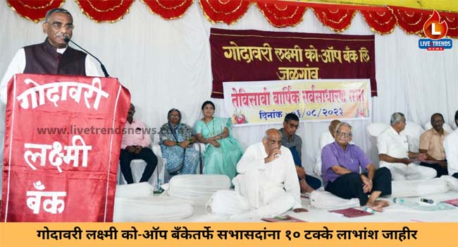 जळगाव-लाईव्ह ट्रेंडस न्यूज प्रतिनिधी । शहरातील गोदावरी लक्ष्मी कॉपरेटिव बँकेतर्फे सभासदांना यंदा १० टक्के लाभांश जाहीर करण्यात आला असल्याची घोषणा चेअरमन डॉक्टर उल्हास पाटील यांनी केली. जिल्ह्याच्या सहकार क्षेत्रात गोदावरी लक्ष्मी को-ऑप बँकेने आपल्या विश्वासार्ह कार्याचा एक वेगळा ठसा उमटविला असल्याचेही त्यांनी सांगितले.