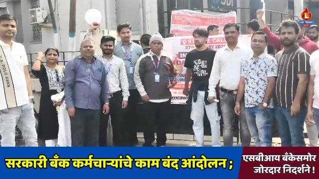 जळगाव लाईव्ह ट्रेंडस न्यूज प्रतिनिधी । देशभरातील बँक कर्मचाऱ्यांच्या प्रलंबित मागण्यांसाठी ‘युनायटेड फोरम ऑफ बँक युनियन्स’ या नऊ प्रमुख संघटनांच्या संयुक्त समितीने मंगळवारी, २७ जानेवारी रोजी देशव्यापी संपाची हाक दिली आहे. या अनुषंगाने जळगावातील बँक कर्मचाऱ्यांनी स्टेट बँक ऑफ इंडियाच्या शाखेसमोर निदर्शने मांडून आपल्या प्रलंबित मागण्या पुर्ण कराव्यात अशी मागणी करण्यात आली आहे. यावेळी विविध घोषणाही देण्यात आले.