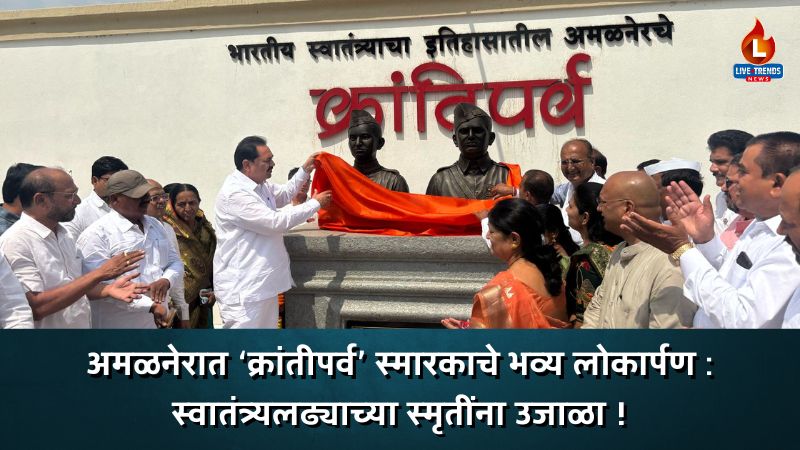 अमळनेर-लाईव्ह ट्रेंडस न्यूज प्रतिनिधी | अमळनेरमध्ये स्वातंत्र्यसैनिक डॉ. उत्तमराव पाटील आणि लीलाताई पाटील यांच्या स्मृती जपण्यासाठी ‘क्रांतीपर्व’ या स्मारकाचे भव्य लोकार्पण माजी मंत्री आमदार अनिल पाटील यांच्या हस्ते करण्यात आले. नगरपरिषद हद्दीतील प्रभाग क्रमांक सातमध्ये उभारण्यात आलेले हे स्मारक नागरिकांसाठी खुले करण्यात आले आहे.