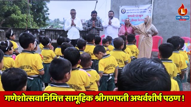 पहूर-लाईव्ह ट्रेंडस न्यूज प्रतिनिधी । पहूर येथील सरस्वती प्ले स्कूल व विवेकवीरा इंग्लिश मीडियम स्कूल मध्ये गणेशोत्सव मोठ्या उत्साहात साजरा करण्यात आला. या निमित्ताने विद्यार्थ्यांसाठी विविध सांस्कृतिक कार्यक्रमांचे आयोजन करण्यात आले होते. यापैकीच एक महत्त्वाचा कार्यक्रम म्हणजे सामूहिक श्रीगणपती अथर्वशीर्ष पठण, ज्याने संपूर्ण परिसरात पवित्र आणि मंगलमय वातावरण निर्माण झाले. लहान मुलांच्या स्वरात गुंजलेल्या अथर्वशीर्ष पठणामुळे उपस्थितांना एक वेगळाच आनंद मिळाला.