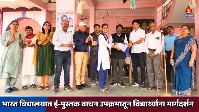 फैजपूर -लाईव्ह ट्रेंड्स न्यूज प्रतिनिधी । डिजिटल युगात मोबाईलचा योग्य वापर कसा करावा, याचे प्रभावी मार्गदर्शन भारत विद्यालय व कनिष्ठ महाविद्यालय, न्हावी येथे घेण्यात आलेल्या ई-पुस्तक संग्रहालय उपक्रमातून करण्यात आले. मराठी भाषा संवर्धन पंधरवड्यानिमित्त आयोजित या उपक्रमात विद्यार्थ्यांना मोबाईलचा वापर केवळ मनोरंजनासाठी नव्हे, तर ज्ञानसंपादनासाठी कसा करता येईल, याची जाणीव करून देण्यात आली.