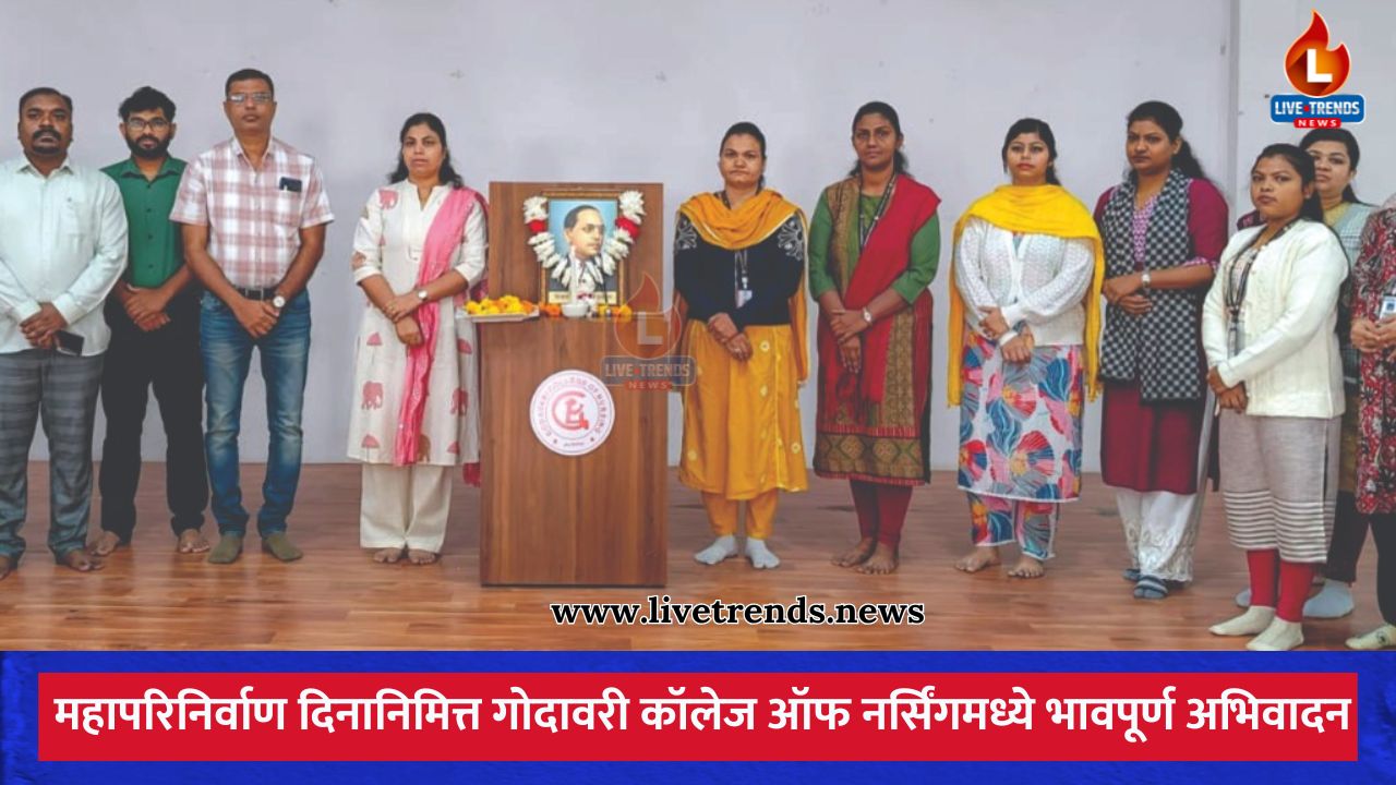 जळगाव – लाईव्ह ट्रेंड्स न्यूज प्रतिनिधी । डॉ. बाबासाहेब आंबेडकर यांच्या महापरिनिर्वाण दिनानिमित्त जळगावातील गोदावरी कॉलेज ऑफ नर्सिंगतर्फे सामाजिक न्याय, समानता आणि मानवतावादी मूल्यांप्रती दृढ निष्ठा व्यक्त करत भावपूर्ण अभिवादन करण्यात आले. विद्यार्थ्यांपासून शिक्षकांपर्यंत सर्वांनी बाबासाहेबांच्या कार्याचे स्मरण करत संविधानिक मूल्यांची उजळणी केली.