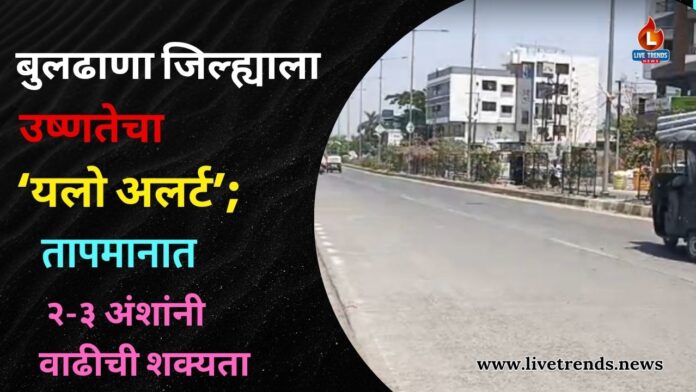 बुलढाणा – लाईव्ह ट्रेंड्स न्यूज प्रतिनिधी । बुलढाणा जिल्ह्यात उष्णतेची तीव्रता दिवसेंदिवस वाढत असून, हवामान विभागाकडून ‘यलो अलर्ट’ जारी करण्यात आला आहे. काल जिल्ह्यात ४२.१ अंश सेल्सिअस तापमानाची नोंद झाली असून, बहुतांश तालुक्यांमध्ये पारा ४० अंशांच्या पुढे गेला आहे.