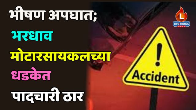 सावदा-लाईव्ह ट्रेंड्स न्यूज प्रतिनिधी । वाघोदा बु. ते सावदा मार्गावरील सीटी पॅलेस हॉटेलजवळ रविवारी (दि. 22 फेब्रुवारी 2026) सायंकाळी झालेल्या भीषण अपघातात पायी जाणाऱ्या व्यक्तीचा दुर्दैवी मृत्यू झाल्याची घटना घडली. भरधाव मोटारसायकलने दिलेल्या जोरदार धडकेत ही दुर्घटना घडली असून परिसरात हळहळ व्यक्त केली जात आहे.
