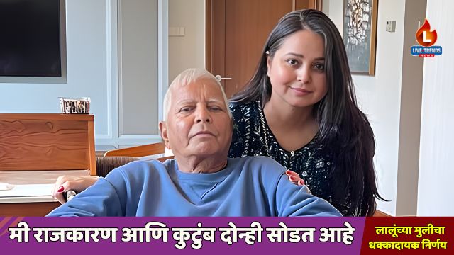 पटना-लाईव्ह ट्रेंड्स न्यूज वृत्तसेवा । बिहारच्या राजकीय पटावर पुन्हा एकदा उलथापालथ झाली असून राष्ट्रीय जनता दलाचे संस्थापक लालू प्रसाद यादव यांच्या कुटुंबात मोठी फूट पडल्याची धक्कादायक घटना समोर आली आहे. विधानसभा निवडणुकीचे निकाल जाहीर झाल्यानंतर त्यांच्या धाकट्या मुली रोहिणी आचार्य यांनी अचानक राजकारणातून निवृत्ती आणि कुटुंबासोबतचे सर्व संबंध तोडण्याची घोषणा केल्यामुळे राज्यभरात खळबळ उडाली आहे.