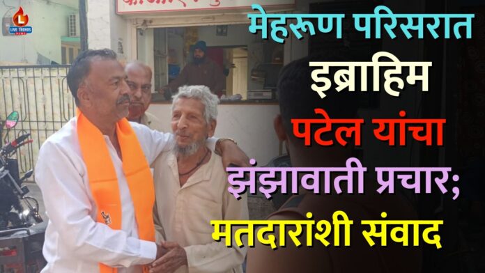 जळगाव-लाईव्ह ट्रेंडस न्यूज प्रतिनिधी । जळगाव महानगरपालिका निवडणुकीच्या पार्श्वभूमीवर प्रभाग क्रमांक १७ ‘क’ मध्ये शिवसेना (उद्धव बाळासाहेब ठाकरे) पक्षाचे उमेदवार इब्राहिम मुसा पटेल उर्फ इबा पटेल यांनी प्रचाराचा वेग वाढवला आहे. मेहरूण परिसरातील पिरझादे मोहल्ला, राम नगर आणि शेरा चौक या भागांमध्ये त्यांनी डोअर-टू-डोअर प्रचार करत मतदारांशी थेट संवाद साधला.