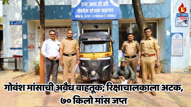 पोलिसांची कारवाई पोलिसांनी रिक्षाची तपासणी केली असता त्यात सुमारे ७० किलो गोवंश मांस आढळून आले. याप्रकरणी एमआयडीसी पोलीस ठाण्यात गुन्हा दाखल करण्यात आला आहे.