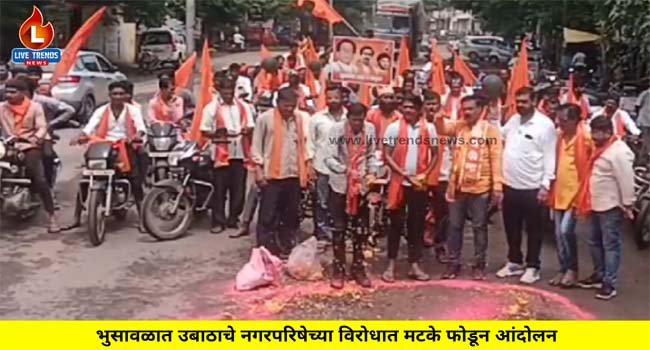 भुसावळ-लाईव्ह ट्रेंडस न्यूज प्रतिनिधी । भुसावळ शहरात विविध समस्यांमुळे नागरीकांना मोठ्या अडचणींचा सामना करावा लागत आहे. याकडे भुसावळ नगरपरिषदेचे साफ दुर्लक्ष झाले आहे. या अनुषंगान उध्दव बाळासाहेब ठाकरे गटाच्या वतीने रस्त्यांचे खांबावर कंदील लावून व खड्ड्यांचे पूजन करून भुसावळ वॉटर सप्लाय मध्ये मटके फोडत अनोखे आंदोलन करण्यात आले.
