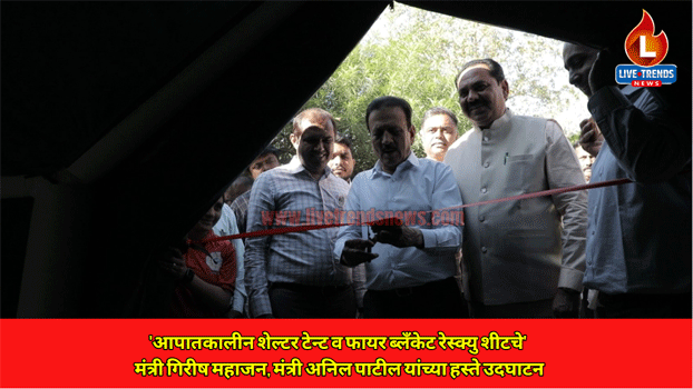 जळगाव-लाईव्ह ट्रेंड्स न्युज प्रतिनिधी | महाराष्ट्र शासनाच्या आपत्ती व्यवस्थापन, मदत व पुनर्वसन विभागामार्फत जळगाव जिल्ह्यात आपत्ती व्यवस्थापन व बचाव कार्यासाठी आवश्यक असलेल्या ‘आपातकालीन शेल्टर टेन्ट व फायर ब्लँकेट रेस्क्यु शीटचे’ उदघाटन ग्रामविकास व पर्यटन मंत्री गिरीष महाजन, मदत व पुनर्वसन मंत्री अनिल पाटील यांच्या उपस्थित संपन्न झाले.