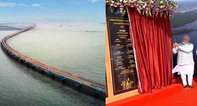 मुंबई-लाईव्ह ट्रेंडस न्यूज वृत्तसेवा | पंतप्रधान नरेंद्र मोदी यांनी शुक्रवारी देशातील सर्वात लांब सागरी सेतू अटल सेतूचे उद्घाटन केले. हा पूल मुंबई ते नवी मुंबईला जोडणार आहे. त्यामुळे 2 तासांचा प्रवास अवघ्या 20 मिनिटांत पूर्ण होईल. डिसेंबर 2016 मध्ये मोदींनी या पुलाची पायाभरणी केली होती. या पुलावर जवळपास 17 हजार 843 कोटी रुपयांचा खर्च आला आहे.