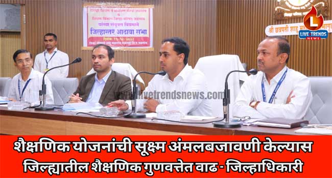 जळगाव-लाईव्ह ट्रेंडस न्यूज प्रतिनिधी । जिल्ह्यातील केंद्रप्रमुख, मुख्याध्यापक व तसेच शिक्षकांनी व्यक्तिशः जबाबदारी घेऊन निपुण भारत तसेच शासनाच्या विविध शैक्षणिक योजनांची अंमलबजावणी सूक्ष्म नियोजन करून काटेकोर पद्धतीने केल्यास जिल्ह्यातील शैक्षणिक गुणवत्तेत नक्कीच वाढ होईल. असा विश्वास जिल्हाधिकारी आयुष प्रसाद यांनी आज येथे व्यक्त केला. जिल्हा परिषदेच्या छत्रपती शाहू महाराज सभागृहात जिल्हा शिक्षण व प्रशिक्षण संस्था, जिल्हा परिषद शिक्षण विभाग यांचे संयुक्त विद्यमाने आयोजित करण्यात आलेल्या जिल्हास्तर आढावा बैठकीत जिल्हाधिकारी आयुष प्रसाद बोलत होते.