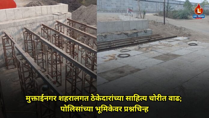 मुक्ताईनगर -लाईव्ह ट्रेंड्स न्यूज प्रतिनिधी | शहरालगत सुरू असलेल्या विविध बांधकाम प्रकल्पांमधून ठेकेदारांच्या साहित्य चोरीच्या घटनांमध्ये लक्षणीय वाढ झाल्याचे समोर आले आहे. वारंवार तक्रारी करूनही पोलिसांकडून ठोस कारवाई होत नसल्याचा आरोप ठेकेदारांकडून करण्यात येत असून यामुळे त्यांच्यात तीव्र नाराजीचे वातावरण निर्माण झाले आहे.