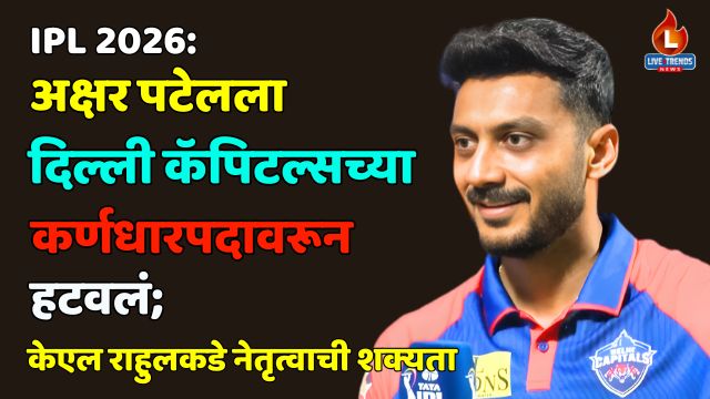 मुंबई-लाईव्ह ट्रेंड्स न्यूज वृत्तसेवा । IPL 2026 च्या हंगामाची चाहूल लागताच संघांमध्ये हालचालींना वेग आला असून, दिल्ली कॅपिटल्सच्या गोटातून एक धक्कादायक बातमी समोर आली आहे. नुकत्याच पार पडलेल्या IPL लिलावानंतर संघरचना आणि रणनीतीवर अंतिम शिक्कामोर्तब करताना फ्रँचायझीने मोठा निर्णय घेतल्याचे मीडिया रिपोर्ट्समधून समोर येत आहे. स्टार अष्टपैलू अक्षर पटेलला कर्णधारपदावरून हटवण्याचा निर्णय घेतला असून, आगामी हंगामात तो केवळ खेळाडू म्हणून संघाचा भाग असेल.