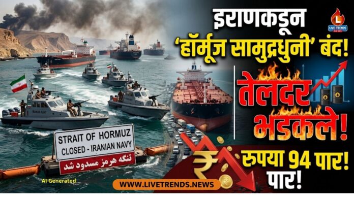 मुंबई-वृत्तसेवा । । मध्य पूर्वेतील वाढत्या युद्धजन्य तणावाच्या पार्श्वभूमीवर इराणने महत्त्वाची ‘हॉर्मूज सामुद्रधुनी’ बंद केल्याने जागतिक अर्थव्यवस्थेला मोठा धक्का बसला आहे. कच्च्या तेलाच्या पुरवठ्यावर परिणाम झाल्यामुळे आंतरराष्ट्रीय बाजारात तेलदर झपाट्याने वाढले असून त्याचा थेट परिणाम भारतीय अर्थव्यवस्थेवर दिसू लागला आहे. परिणामी भारतीय रुपयानेही विक्रमी घसरण नोंदवत अमेरिकन डॉलरच्या तुलनेत 94 चा टप्पा ओलांडला आहे.