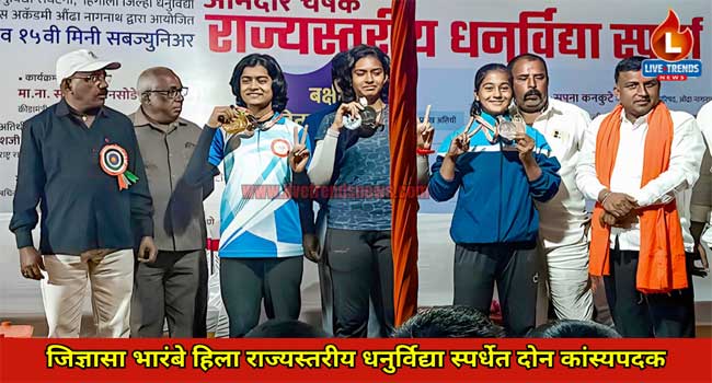 सावदा-लाईव्ह ट्रेंड्स न्युज प्रतिनिधी । १५ वी मिनी सब जुनिअर धनुर्विद्या स्पर्धा दिनांक २८ ते ३० जानेवारी 202४ दरम्यान हिंगोली (औंढा नागनाथ) येथे पार पडल्या. सदर स्पर्धेमध्ये धनुर्विद्या रिकर्व्ह प्रकारात डॉ. उल्हास पाटील इंग्लिश मीडियम स्कूल सावदाची विद्यार्थिनी जिज्ञासा प्रशांत भारंबे हिस ओव्हर ऑल कांस्यपदक मिळाले आहे. एलिमिनेशन प्रकारात कांस्यपदक असे एकूण दोन कांस्य पदक मिळाले व पुन्हा एकदा राष्ट्रीय स्पर्धेसाठी महाराष्ट्र संघात तिची निवड झाली.