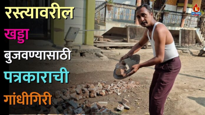 या खड्ड्यामुळे वाहनचालक व पादचाऱ्यांना अपघाताचा धोका निर्माण झाला होता. नागरिकांच्या सुरक्षिततेचा प्रश्न गंभीर बनत असतानाही ग्रामपंचायतीकडून दुर्लक्ष होत असल्याने अखेर एका पत्रकाराने गांधीगिरीचा मार्ग अवलंबत स्वतःच पुढाकार घेत खड्डा बुजवून घेतला.