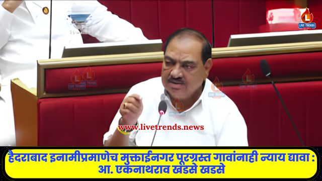 मुक्ताईनगर – लाईव्ह ट्रेंड्स न्यूज प्रतिनिधी । तालुक्यातील सन १९५९ च्या महापुरात विस्थापित झालेल्या अकरा गावांच्या ग्रामस्थांना अखेर दिलासा मिळण्याची शक्यता निर्माण झाली आहे. हिवाळी अधिवेशनादरम्यान विधानपरिषद सभागृहात हैदराबाद इनामी जमिनी नियमितीकरणासंदर्भातील विधेयकावरील चर्चेत सहभागी होताना आमदार एकनाथराव खडसे यांनी या पूरग्रस्त गावांच्या गावठाणाची नोंद भूमी अभिलेख विभागाकडे करून ती मोफत नावावर करण्याची मागणी मांडली.