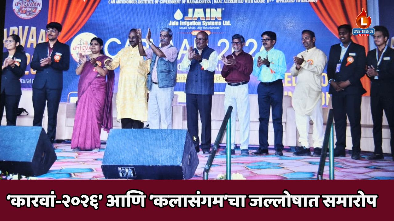 जळगाव-लाईव्ह ट्रेंड्स न्यूज प्रतिनिधी । शासकीय अभियांत्रिकी महाविद्यालय, जळगाव येथे आयोजित ‘कारवां-२०२६’ आणि ‘कलासंगम’ या बहुप्रतिक्षित सांस्कृतिक महोत्सवांचा दिमाखदार समारोप उत्साहपूर्ण वातावरणात पार पडला. सात दिवस चाललेल्या या भव्य सोहळ्यात विद्यार्थ्यांच्या कलागुणांना वाव मिळत कला, सर्जनशीलता आणि सामाजिक जाणीवेचा सुंदर संगम अनुभवायला मिळाला.