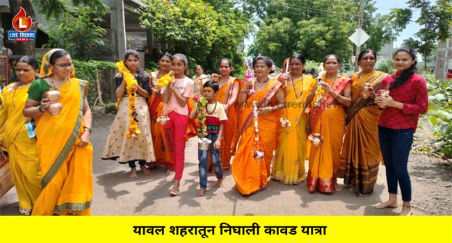 यावल नगरीतील महिलांनी शहरातील फैजपुर मार्गा वरील असलेल्या श्री मनुदेवी मंदीर परिसरातुन कावड यात्रेची सुरूवात केली. यानंतर विविध शिव मंदिरांमध्ये जाऊन जलाभिषेक करण्यात आला. कावड यात्रेच्या माध्यमातून शिवालयात जाऊन जलाभिषेक केल्यास मोक्ष प्राप्त होतो,आपल्या जीवनात कष्ट न राहता सुखाची प्राप्ती होते. घरात धन-धान्याची कमतरता राहत नाही,आपल्या सर्व इच्छा आणी आकांक्षा पूर्ण होतात,संपूर्ण सृष्टीवर शांतता नांदावी व सर्व प्राणीमात्रांचे कल्याण होतेअसे सांगितले आहे.