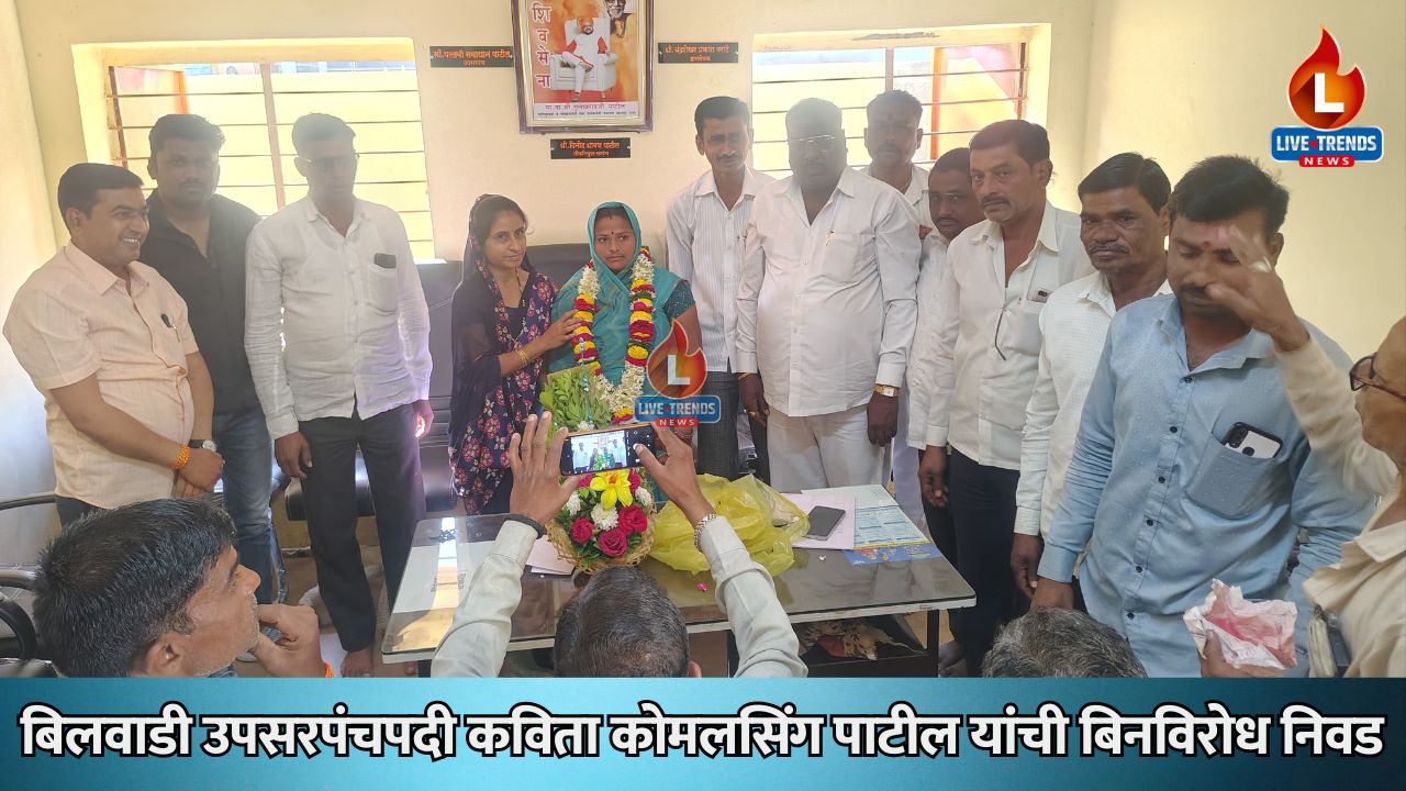 जळगाव-लाईव्ह ट्रेंडस न्यूज प्रतिनिधी । जळगाव तालुक्यातील वावडदे जवळील बिलवाडी ग्रामपंचायतीच्या रिक्त असलेल्या उपसरपंच पदासाठी विशेष सभा आयोजित करण्यात आली होती. या सभेमध्ये उपसरपंच पदी कविता कोमलसिंग पाटील यांची बिनविरोध निवड करण्यात आली. कोणत्याही विरोधाशिवाय पार पडलेल्या या निवडीमुळे गावात आनंदाचे वातावरण पसरले असून, सर्वच स्तरांतून त्यांचे अभिनंदन होत आहे.