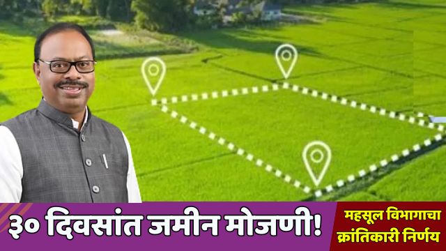 मुंबई – लाईव्ह ट्रेंड्स न्यूज वृत्तसेवा । राज्यातील कोट्यवधी प्रलंबित जमीन मोजणी प्रकरणांवर सरकारने निर्णायक पाऊल उचलले असून, आता कोणतीही जमीन मोजणी केवळ ३० दिवसांत पूर्ण होणार आहे. महसूलमंत्री चंद्रशेखर बावनकुळे यांनी घेतलेल्या या क्रांतिकारी निर्णयामुळे नागरीकांना मोठा दिलासा मिळणार आहे. या निर्णयाची अधिकृत अधिसूचना देखील सरकारने जारी केली असून, त्याची अंमलबजावणी राज्यभर तात्काळ सुरू होणार आहे.