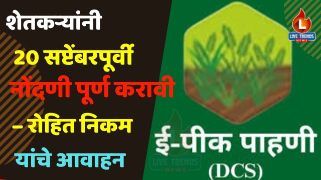 जळगाव-लाईव्ह ट्रेंड्स न्यूज प्रतिनिधी । खरीप हंगाम 2025-26 साठी केंद्र सरकारच्या आधारभूत किंमत योजनेचा लाभ मिळवण्यासाठी शेतकऱ्यांनी वेळेत ई-पिक पाहणी पूर्ण करावी, असे आवाहन महाराष्ट्र राज्य पणन महासंघाचे उपाध्यक्ष रोहित निकम यांनी केले आहे. राज्य सरकारने शेतकऱ्यांना 20 सप्टेंबर 2025 पर्यंत मुदतवाढ दिली असून, ही अंतिम संधी असून याचा लाभ घेण्याचे आवाहन करण्यात आले आहे.