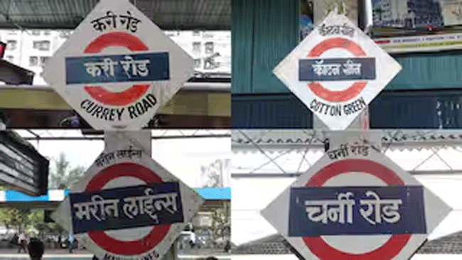 मध्य रेल्वेवरील करीरोड रेल्वे स्थानकाचं नाव बदलून लालबाग तर सॅण्डहर्स्ट रोड रेल्वे स्थानकाचे नाव डोंगरी करण्यात येणार आहे. पश्चिम रेल्वेवरील मरीन लाईन्स रेल्वे स्थानकाचं नाव मुंबादेवी आणि चर्नीरोड रेल्वे स्थानकाचं नाव गिरगाव रेल्वे स्थानक करण्यात येणार आहे.