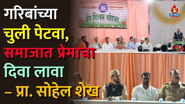जळगाव-लाईव्ह ट्रेंड्स न्यूज प्रतिनिधी । समाजात वाढत चाललेल्या दुराव्याच्या पार्श्वभूमीवर परस्परांमध्ये प्रेम, आदर आणि बंधुभाव निर्माण करण्याचे महत्त्व अधोरेखित करत, “काही पेटवण्याची इच्छा असेल तर गरिबांची चूल पेटवा,” असे हृदयस्पर्शी आवाहन प्रख्यात वक्ते प्रा. सोहेल अमीर शेख यांनी केले. ईदमिलन सोहळ्यात त्यांनी समाजप्रबोधनाचा संदेश देत उपस्थितांना अंतर्मुख केले.