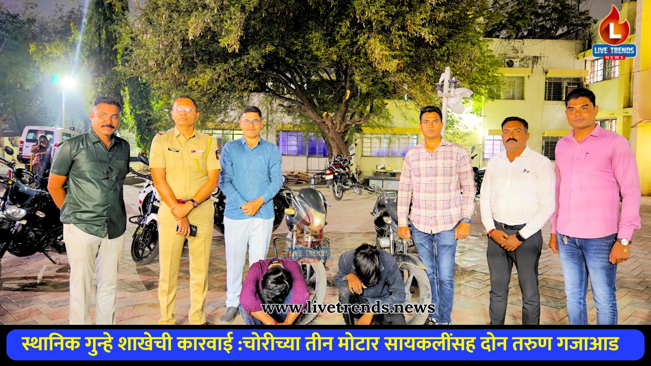 भुसावळ- लाईव्ह ट्रेंड्स न्यूज प्रतिनिधी । जळगाव स्थानिक गुन्हे शाखेने केलेल्या धाडसी कारवाईत चोरीस गेलेल्या तीन मोटारसायकली जप्त करण्यात आल्या असून दोन अल्पवयीन तरुणांना ताब्यात घेण्यात आले आहे. गोपनीय माहितीच्या आधारे उचललेल्या या कारवाईमुळे जामनेर व भुसावळ परिसरातील वाहनचोरीच्या घटनांचा उलगडा झाला असून पोलिसांच्या दक्षतेमुळे गुन्हेगारांच्या हालचालींवर प्रभावी लगाम बसल्याचे दिसून येत आहे.