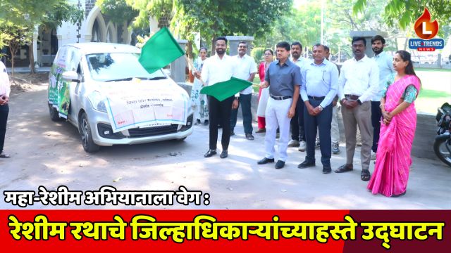 जळगाव-लाईव्ह ट्रेंड्स न्यूज प्रतिनिधी । राज्य शासनाच्या सहकार, पणन व वस्त्रोद्योग विभागांतर्गत राबविण्यात येत असलेल्या महा-रेशीम अभियान 2026 अंतर्गत जळगाव जिल्ह्यात तुती लागवड वाढवून रेशीम उत्पादनाला चालना देण्यासाठी विशेष जनजागृती मोहीम सुरू करण्यात आली आहे. या मोहिमेअंतर्गत जिल्हा रेशीम कार्यालयाच्या वतीने रेशीम रथाच्या माध्यमातून शेतकऱ्यांमध्ये प्रचार व प्रसार केला जाणार असून या जनजागृती रथाचे उद्घाटन जिल्हाधिकारी रोहन घुगे यांच्या हस्ते जिल्हाधिकारी कार्यालय, जळगाव येथे करण्यात आले.
