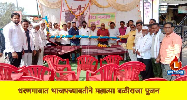 धरणगाव-लाईव्ह ट्रेंडस न्यूज प्रतिनिधी | भारतीय जनता पक्षातर्फे बलिप्रतिपदा दिवसानिमित्ताने महात्मा बळीराजा प्रतिमा पूजनाचा कार्यक्रम आयोजित करण्यात आला होता