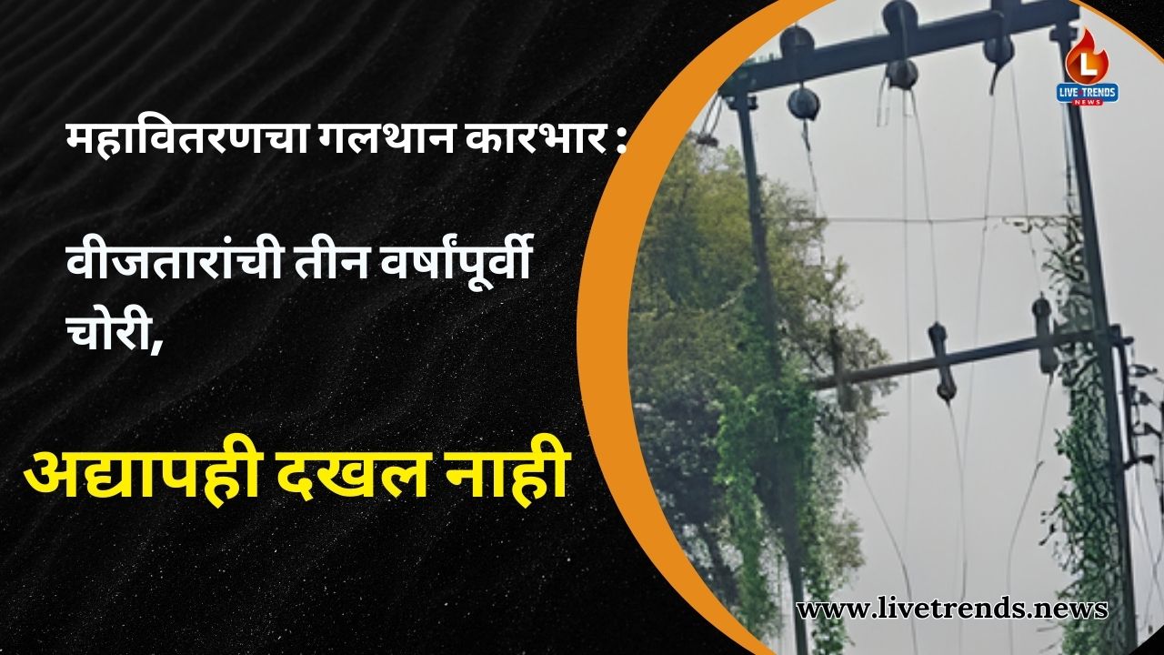 मुक्ताईनगर-लाईव्ह ट्रेंड्स न्यूज प्रतिनिधी । तालुक्यातील घोडसगाव शिवारात महावितरणच्या निष्काळजी आणि संशयास्पद कारभाराचा गंभीर प्रकार समोर आला असून तीन वर्षांपूर्वी चोरीला गेलेल्या वीजतारांनंतर आजतागायत शेतकऱ्यांच्या शेतात नवीन तारा बसवण्यात आलेल्या नाहीत. त्यामुळे शेतकऱ्यांना विजेअभावी शेती करताना मोठ्या अडचणींना सामोरे जावे लागत असून प्रशासनाविरोधात संतापाची लाट उसळली आहे.