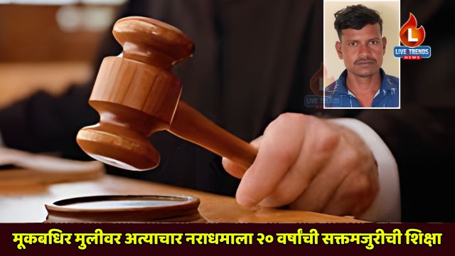 अमळनेर-लाईव्ह ट्रेंडस न्यूज प्रतिनिधी ।माणुसकीला काळिमा फासणाऱ्या एका गंभीर प्रकरणात अमळनेर येथील न्यायालयाने निकाल दिला आहे. एका १६ वर्षीय मूकबधिर अल्पवयीन मुलीवर वारंवार अत्याचार करून तिला गर्भवती करणाऱ्या नराधम आरोपी दीपक नाना भिल (वय २७) याला २० वर्षे सश्रम कारावास आणि १० हजार रुपये दंडाची शिक्षा सुनावण्यात आली आहे.