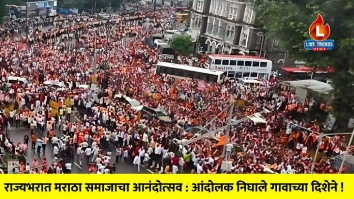मुंबई-वृत्तसेवा | राज्य सरकारने मनोज जरांगे पाटील यांच्या आंदोलनाची दखल घेत सर्व मागण्या मान्य केल्यामुळे राज्यभरात मराठा समाजाच्या वतीने आनंदोत्सव साजरा करण्यात येत आहे. तर आता आंदोलक आपापल्या गावाच्या दिशेने परतू लागले आहेत.