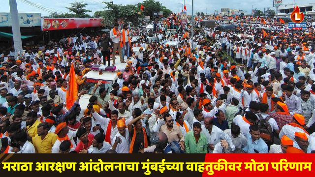 मुंबई-लाईव्ह ट्रेंड्स न्यूज वृत्तसेवा। मराठा आरक्षणासाठी मनोज जरांगे पाटील यांच्या नेतृत्वात मुंबईतील आझाद मैदानात सुरू असलेल्या आंदोलनामुळे शहरात वाहतुकीची कोंडी निर्माण झाली आहे. राज्याच्या कानाकोपऱ्यातून आलेल्या लाखो मराठा बांधवांच्या उपस्थितीमुळे मुंबईतील प्रमुख रस्ते, रेल्वे स्थानके आणि महामार्गांवर प्रवाशांना प्रचंड अडचणींचा सामना करावा लागत आहे. गणेशोत्सवाच्या पार्श्वभूमीवर आधीच गर्दी असलेल्या शहरात हे आंदोलन वाहतूक व्यवस्थेसाठी मोठं आव्हान बनलं आहे.