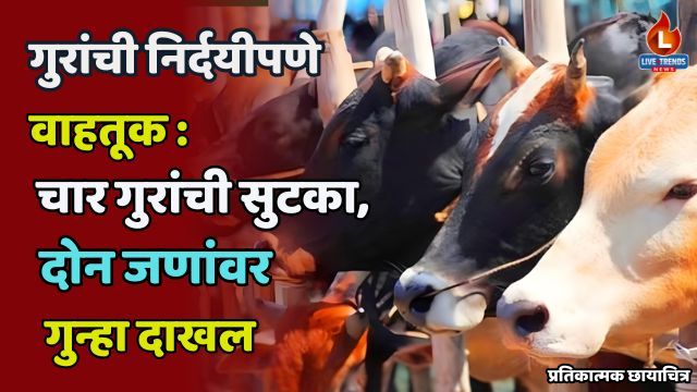 या वाहनांची झडती घेतली असता, त्यात प्रत्येकी दोन अशा एकूण ४ गुरांना अत्यंत दाटीवाटीने आणि निर्दयीपणे बांधण्यात आल्याचे निष्पन्न झाले. या वाहतुकीसाठी चालकांकडे कोणताही अधिकृत परवाना नव्हता. पोलिसांनी याप्रकरणी चालक अबरार जहुर शेख (वय २५) आणि सतिश कैलास थोरात (वय ३५), दोन्ही राहणार शिरपूर, जि. धुळे यांना ताब्यात घेतले आहे.