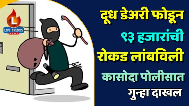 जळगाव-लाईव्ह ट्रेंडस न्यूज प्रतिनिधी । एरंडोल तालुक्यातील निपाणे येथील सुभाष को-ऑपरेटिव्ह दूध डेअरीमध्ये मध्यरात्री अज्ञात चोरट्यांनी घरफोडी करून डेअरीतील कपाटाचे लॉकर तोडून एकूण ९३ हजार ६७९ रुपयांची रोकड चोरट्यांनी लंपास केली आहे. याप्रकरणी कासोदा पोलीस ठाण्यात अज्ञात चोरट्यांविरोधात गुन्हा दाखल करण्यात आला आहे.
