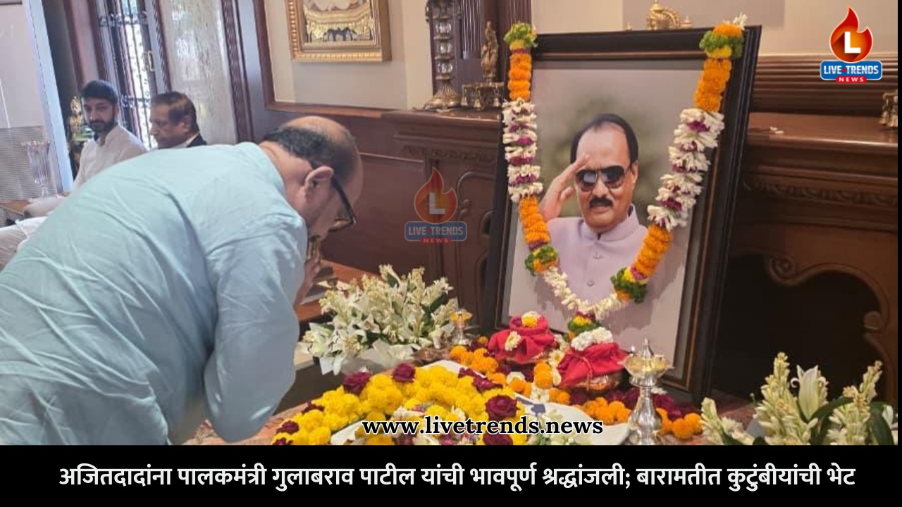 जळगाव- लाईव्ह ट्रेंड्स न्यूज प्रतिनिधी । राज्याचे दिवंगत उपमुख्यमंत्री तथा ज्येष्ठ नेते अजितदादा पवार यांच्या निधनाने संपूर्ण राज्य शोकसागरात बुडाले असताना जळगाव जिल्ह्याचे पालकमंत्री गुलाबराव पाटील यांनी बारामती येथे जाऊन त्यांच्या पार्थिवास श्रद्धांजली अर्पण केली. त्यांच्या या भेटीदरम्यान राजकीय वर्तुळात हळहळ व्यक्त होत असून अजित पवार यांच्या जाण्याने निर्माण झालेली पोकळी अधोरेखित झाली.