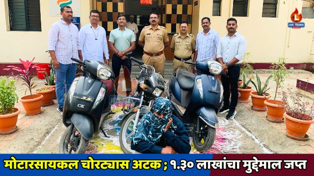 मोटारसायकल चोरट्यास अटक ; १.३० लाखांचा मुद्देमाल जप्त