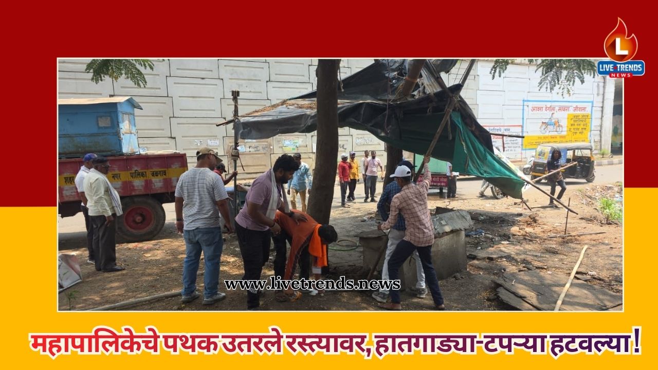 जळगाव-लाईव्ह ट्रेंडस न्यूज प्रतिनिधी । जळगाव महापालिकेने गेल्या आठवड्यापासून शहरात सुरू केलेल्या अतिक्रमण विरोधी मोहिमेने आज मंगळवारी, २१ एप्रिल रोजी पुन्हा एकदा जोर धरला. सकाळी ११ वाजण्याच्या सुमारास महापालिकेचे अतिक्रमण विरोधी पथक आकाशवाणी चौक आणि प्रभात चौकात धडकले. या परिसरातील रहदारीला गंभीर अडथळा ठरणाऱ्या अनधिकृत हातगाड्या आणि टपऱ्यांवर महापालिकेने कठोर कारवाई केली.