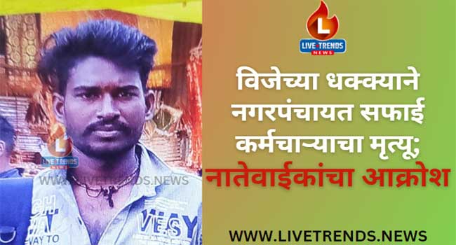 याबाबत अधिक माहिती अशी की, जळगाव तालुक्यातील नशिराबाद विशाल गोपी चिरावंडे हा तरूण आपल्या परिवारासह वास्तव्याला आहे. गेल्या दोन वर्षांपासून नशिराबाद नगरपंचायत येथे सफाई कर्मचारी म्हणून कामाला होता. नेहमीप्रमाणे विशाल चिरावंडे हा मंगळवारी ५ सप्टेंबर रोजी सकाळी ८ वाजता नशिराबाद गावजवळील शेताजवळ गटारीचे काम करत असतांना त्याला विजेचा जोरदार धक्का लागला. हा प्रकार आजूबाजूच्या नागरीकांच्या लक्षात आल्याने त्याला उचलून खासगी वाहनातून जिल्हा शासकीय वैद्यकीय महाविद्यालयात दाखल करण्यात आले. यावेळी वैद्यकीय अधिकारी यांनी तपासणी अंती त्याला मयत घोषीत केले. यावेळी जिल्हा शासकीय वैद्यकीय महाविद्यालयात नातेवाईकांनी एकच आक्रोश केल्याचे पहायला मिळाले. याबाबत नशिराबाद पोलीसात अकस्मात मृत्यूची नोंद करण्यात आली. मयत तरूणाच्या पश्चात आई सुनिता, तीन भाऊ , पत्नी नैना, तर सोनी व काजल या दोन मुली असा परिवार आहे. या घटनेमुळे परिसरात हळहळ व्यक्त केली जात आहे.