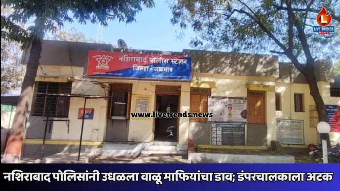 नशिराबाद लाईव्ह ट्रेंडस न्यूज प्रतिनिधी । नशिराबाद पोलिसांनी अवैध वाळू वाहतुकीविरुद्ध मोठी कारवाई केली आहे. गोदावरी हॉस्पिटलसमोरील उड्डाणपुलावर ३१ डिसेंबर रोजी पहाटे १ वाजेच्या सुमारास पोलिसांनी सापळा रचून वाळूने भरलेला डंपर पकडला असून, याप्रकरणी एका आरोपीला अटक करण्यात आली आहे. या कारवाईत एकूण ३ लाख ६० हजार रुपयांचा मुद्देमाल जप्त करण्यात आला आहे.