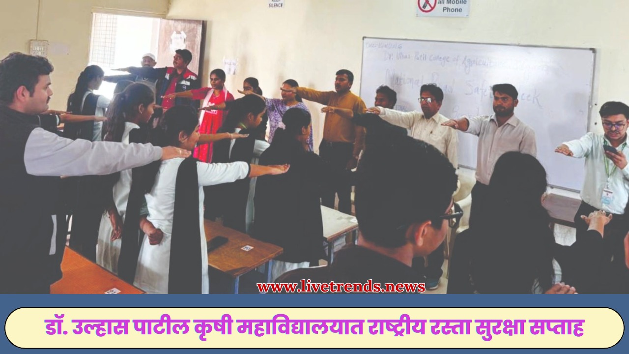 जळगाव-लाईव्ह ट्रेंड्स न्यूज प्रतिनिधी । डॉ. उल्हास पाटील कृषी महाविद्यालयात राष्ट्रीय रस्ता सुरक्षा सप्ताह उत्साहात साजरा करण्यात आला. या उपक्रमाद्वारे रस्ते अपघातांचे प्रमाण कमी करणे, वाहतूक नियमांविषयी जागरूकता निर्माण करणे आणि सुरक्षित प्रवासाची सवय रुजवणे हा मुख्य उद्देश ठेवण्यात आला.