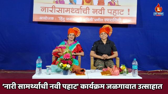 जळगाव-लाईव्ह ट्रेंड्स न्यूज प्रतिनिधी । महिलांच्या स्वसंरक्षण, आत्मविश्वास आणि स्वावलंबनाचा संदेश देणारा ‘नारी सामर्थ्याची नवी पहाट’ हा प्रेरणादायी कार्यक्रम जळगाव येथे उत्साहपूर्ण वातावरणात पार पडला. हिंदु जनजागृती समिती प्रणित रणरागिणी शाखेच्या वतीने आयोजित या कार्यक्रमात शहरातील मोठ्या संख्येने महिलांनी उत्स्फूर्त सहभाग नोंदवला.