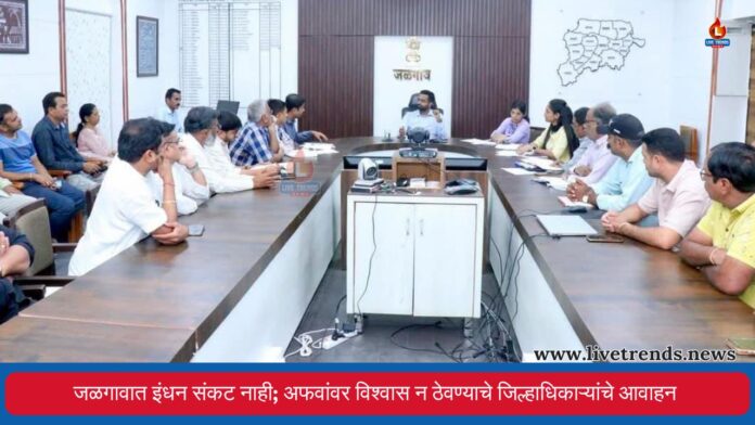 जळगाव-लाईव्ह ट्रेंड्स न्यूज प्रतिनिधी । जिल्ह्यात एलपीजी गॅस सिलेंडर तसेच पेट्रोल-डिझेल इंधनाच्या तुटवड्याबाबत पसरत असलेल्या अफवांच्या पार्श्वभूमीवर जिल्हा प्रशासनाने स्पष्ट भूमिका घेत नागरिकांना दिलासा दिला आहे. जिल्हाधिकारी रोहन घुगे यांच्या अध्यक्षतेखाली झालेल्या आढावा बैठकीत जिल्ह्यात गॅस आणि इंधनाचा पुरेसा साठा उपलब्ध असून पुरवठा सुरळीत सुरू असल्याचे स्पष्ट करण्यात आले. त्यामुळे नागरिकांनी कोणत्याही अफवांवर विश्वास न ठेवता शांत राहावे, असे आवाहन प्रशासनाकडून करण्यात आले आहे.