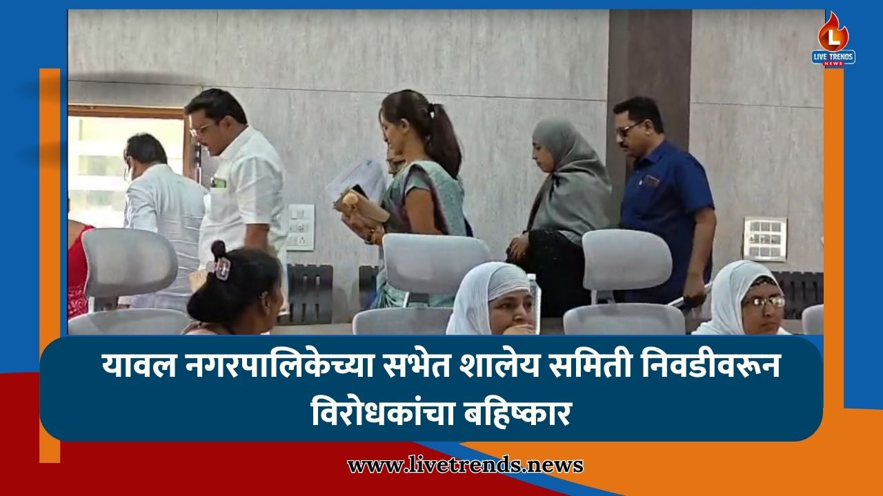 यावल-लाईव्ह ट्रेंड्स न्यूज प्रतिनिधी । यावल नगरपालिकेची सर्वसाधारण सभा नगराध्यक्ष छाया पाटील यांच्या अध्यक्षतेखाली पार पडली असून, या सभेत शहराच्या विकासासाठी २७ विविध कामांना मंजुरी देण्यात आली. मात्र शालेय समिती निवडीच्या मुद्द्यावरून सभा चांगलीच गाजली विरोधी गटातील सदस्यांनी बहिष्कार टाकत वातावरण तापले.