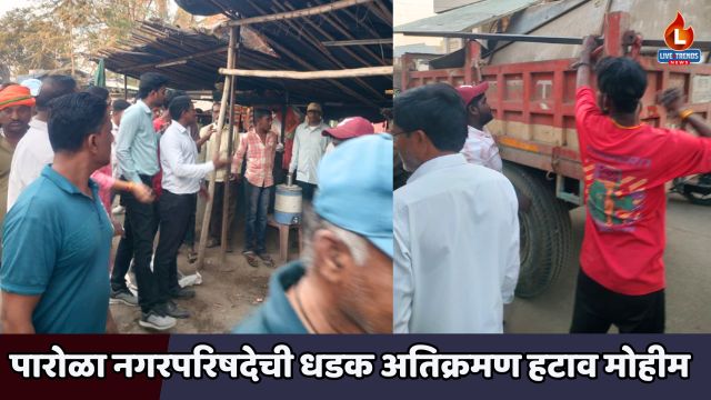 पारोळा-लाईव्ह ट्रेंड्स न्यूज प्रतिनिधी । शहरात अनेक दिवसांपासून डोकेदुखी ठरलेल्या अतिक्रमणाच्या प्रश्नावर अखेर पारोळा नगरपरिषदेने धडक कारवाई करत विशेष अतिक्रमण हटाव मोहीम राबवली. या मोहिमेमुळे शहरातील मुख्य रस्ते, बाजारपेठा आणि सार्वजनिक ठिकाणे मोकळी झाली असून नागरिक, महिला आणि ज्येष्ठ नागरिकांना दिलासा मिळाला आहे. नगराध्यक्ष चंद्रकांत भिकनराव पाटील, उपनगराध्यक्ष अॅड. रोहन मोरे तसेच सर्व नगरसेवक-नगरसेविका यांच्या मार्गदर्शनाखाली आणि मुख्याधिकारी तुषार नेरकर यांच्या आदेशान्वये ही मोहीम राबवण्यात आली.
