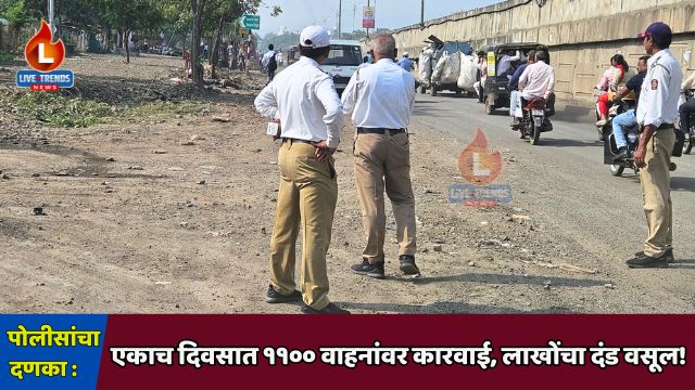 जळगाव-लाईव्ह ट्रेंडस न्यूज प्रतिनिधी । जिल्ह्यातील वाढते रस्ते अपघात आणि गुन्हेगारीला लगाम घालण्यासाठी पोलीस अधीक्षक डॉ. महेश्वर रेड्डी यांच्या आदेशानुसार संपूर्ण जिल्ह्यात बुधवारी, २४ डिसेंबर रोजी धडक ‘विशेष वाहन चेकिंग मोहीम’ राबवण्यात आली. या मोहिमेत नियमांचे उल्लंघन करणाऱ्या ११०० हून अधिक वाहनधारकांना पोलिसांनी दणका दिला असून, एकाच दिवसात तब्बल १३ लाख ७१ हजार रुपयांचा दंड वसूल केला आहे.