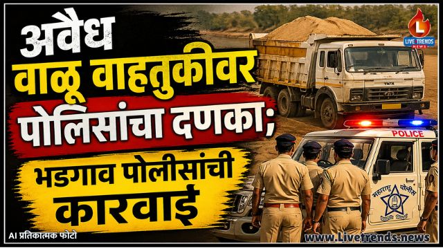 भडगाव-लाईव्ह ट्रेंडस न्यूज प्रतिनिधी । भडगाव तालुक्यात अवैध वाळू उपशाचे सत्र सुरूच असून, भडगाव पोलिसांनी यावर धडक कारवाई केली आहे. वाडजी फाटा परिसरात अवैधपणे वाळूची वाहतूक करणाऱ्या ट्रॅक्टरवर कारवाई करत पोलिसांनी ४ लाख ५४ हजार रुपयांचा मुद्देमाल जप्त केला आहे. याप्रकरणी दोन संशयितांविरुद्ध गुन्हा दाखल करण्यात आला आहे.