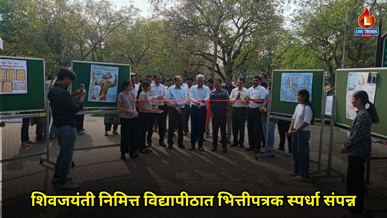 जळगाव-लाईव्ह ट्रेंड्स न्यूज प्रतिनिधी । छत्रपती शिवाजी महाराज यांच्या जयंतीनिमित्त कवयित्री बहिणाबाई चौधरी उत्तर महाराष्ट्र विद्यापीठात आयोजित करण्यात आलेल्या भित्तीपत्रक स्पर्धेला विद्यार्थ्यांचा उत्स्फूर्त प्रतिसाद लाभला. “छत्रपती शिवाजी महाराज यांचे जीवन कार्य” या विषयावर विद्यार्थ्यांनी साकारलेल्या भित्तीपत्रकांमधून शिवचरित्रातील शौर्य, स्वराज्याची संकल्पना आणि राष्ट्रनिष्ठेचे दर्शन घडले.